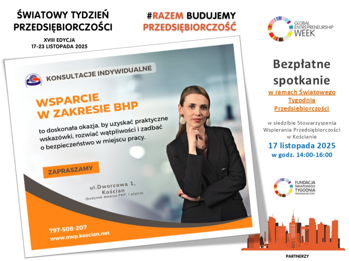 Przedsiębiorcy oraz osoby planujące założenie działalności gospodarczej mogą skorzystać z bezpłatnych konsultacji w zakresie Bezpieczeństwa i Higieny Pracy (BHP).