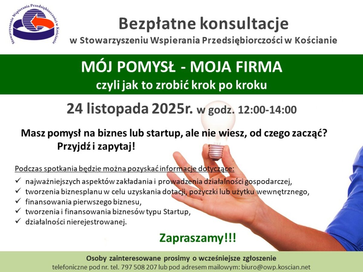 24.11.2025 Mój pomysł - moja firma, czyli jak to zrobić krok po kroku