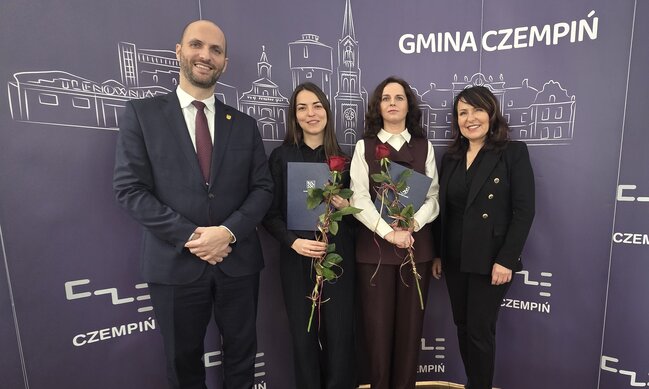 Z radością informujemy, że do grona nauczycieli, którzy uzyskali stopnień awansu zawodowego dołączyły dwie Nauczycielki Szkoły Podstawowej im. Bohaterów Westerplatte w Czempiniu. Dnia 16 grudnia 2025 r. w Sali Sesyjnej Urzędu Gminy w Czempiniu Pani Ewa Mielcarek i Pani Estera Skrzypek otrzymały z rąk Burmistrza Gminy Czempiń - Pana Konrada Malickiego akt nadania stopnia nauczyciela mianowanego. W uroczystości wzięła udział Pani Dyrektor Arleta Adamczak.