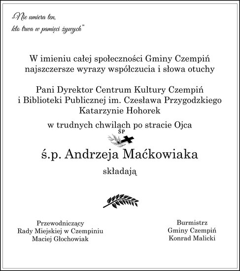 Najszczersze wyrazy współczucia i słowa otuchy dla Pani Katarzyny Hohorek
