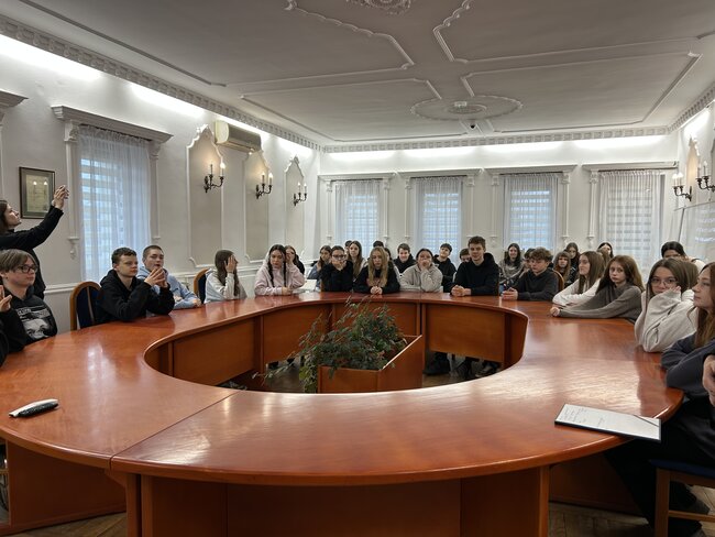 Uczniowie mieli okazję zwiedzić Salę Ślubów Urzędu Stanu Cywilnego i porozmawiać z Zastępcą Kierownika USC, Norbertem Bartkowiakiem, oraz Marzeną Stam-Włodarczak. Rozmowa dotyczyła m.in. formalności związanych z zawarciem małżeństwa oraz wyjątkowego wystroju Sali Ślubów.