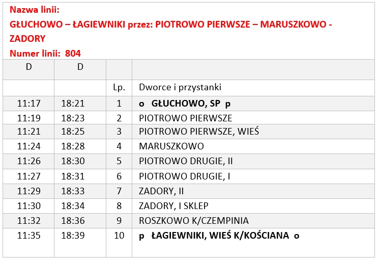 Linia 804 relacji Głuchowo - Łagiewniki przez Piotrowo Pierwsze, Maruszkowo, Piotrowo Drugie, Zadory, Roszkowo
