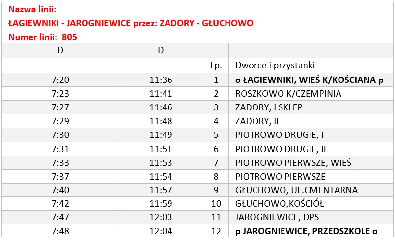 Linia 805 relacji Łagiewniki - Jarogniewice przez Roszkowo, Zadory, Piotrowo Drugie, Piotrowo Pierwsze, Głuchowo