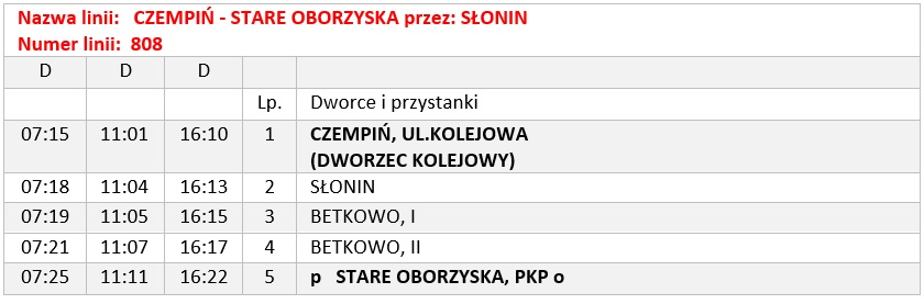 Linia 808 relacji Czempiń - Stare Oborzyska przez Słonin, Betkowo