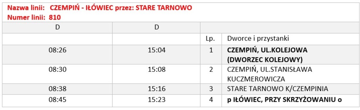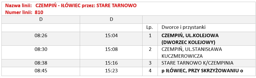Linia 810 relacji Czempiń - Iłówiec przez Stare Tarnowo