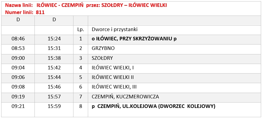 Linia 811 relacji Iłowiec - Czempiń przez Szołdry, Iłówiec Wielki