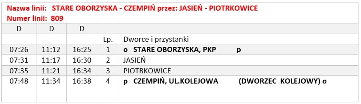 Linia 809 relacji Stare Oborzyska - Czempiń przez Jasień, Piotrkowice