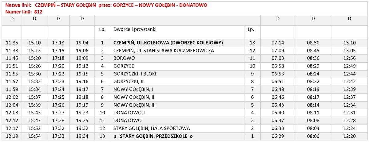 Linia 812 relacji Czempiń - Stary Gołębin przez Borowo, Gorzyce, Gorzyczki, Nowy Gołębin, Donatowo oraz Stary Gołębin - Czempiń przez Donatowo, Nowy Gołębin, Gorzyczki, Gorzyce, Borowo