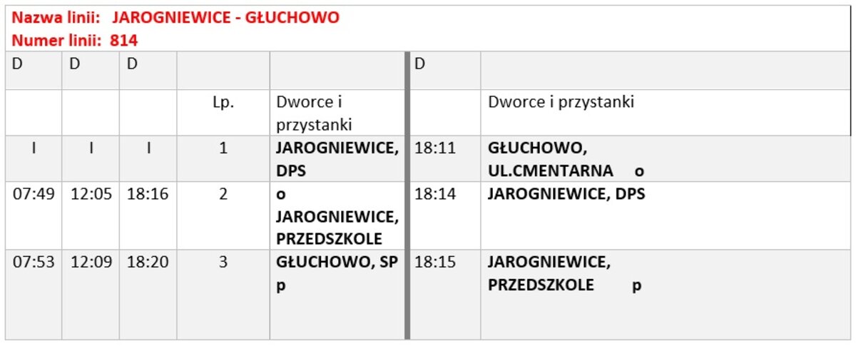 Linia 814 relacji Jarogniewice - Głuchowo oraz Głuchowo - Jrogniewice
