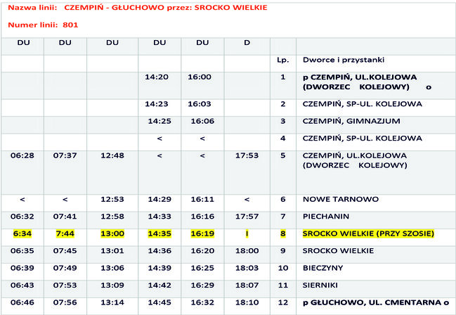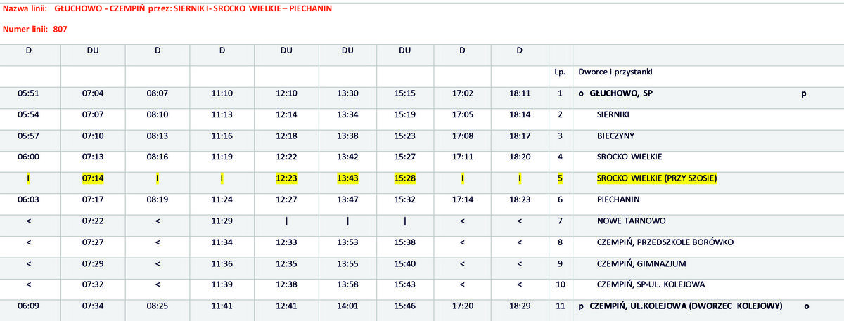 W miejscowości Srocko Wielkie dodano po jednym nowym przystanku (ich lokalizacje przedstawiono na załączonej mapie).