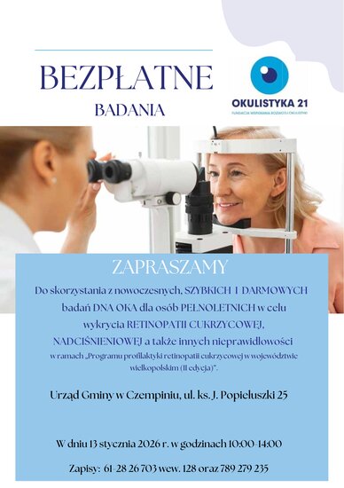 Zadbaj o swoje oczy i skorzystaj z darmowych, szybkich badań, które pomagają wykryć poważne choroby wzroku. Badania przeznaczone są dla osób pełnoletnich i realizowane w ramach programu profilaktycznego.