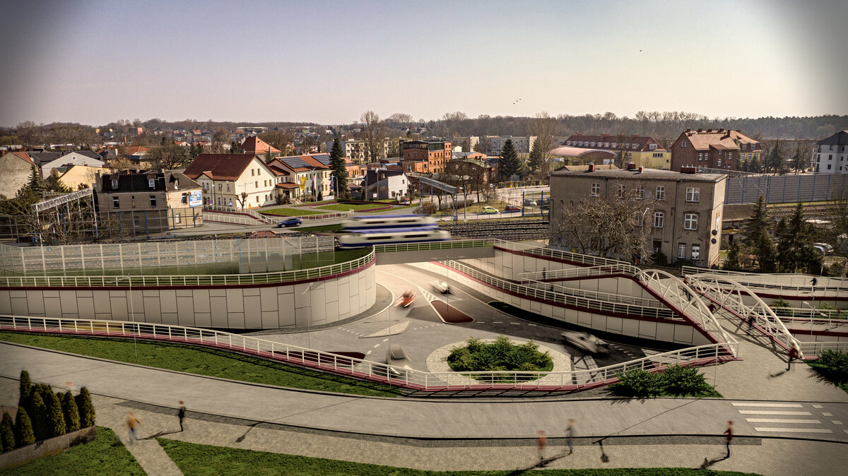 Ø Przejście dla pieszych i rowerzystów od zachodniej strony torów znajdzie się na kładce umiejscowionej, nad jezdnią znajdującą się poniżej poziomu gruntu. Wejście do tunelu dla pieszych i rowerzystów będzie tuż przy urzędzie gminy. Dla pieszych przewidziano schody, a dla rowerzystów, osób z wózkami i osób z niepełnosprawnościami – pochylnię. Po zachodniej stronie tunelu znajdzie się ślimakowy wyjazd dla rowerzystów i schody dla pieszych.