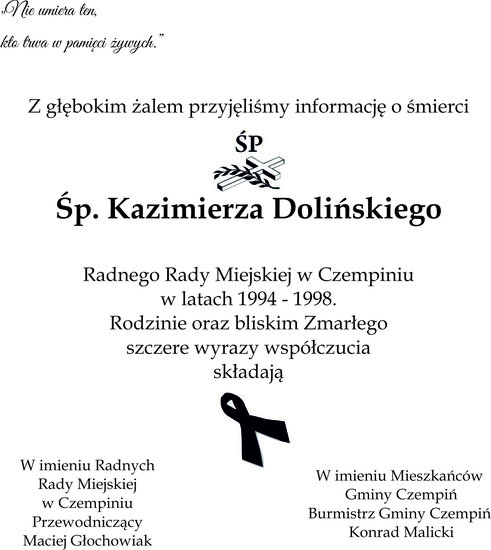 Kondolencje z powodu śmierci Pana Kazimierza Dolińskiego
