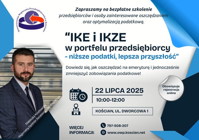 Szkolenie „IKE i IKZE w portfelu przedsiębiorcy – niższe podatki, lepsza przyszłość”